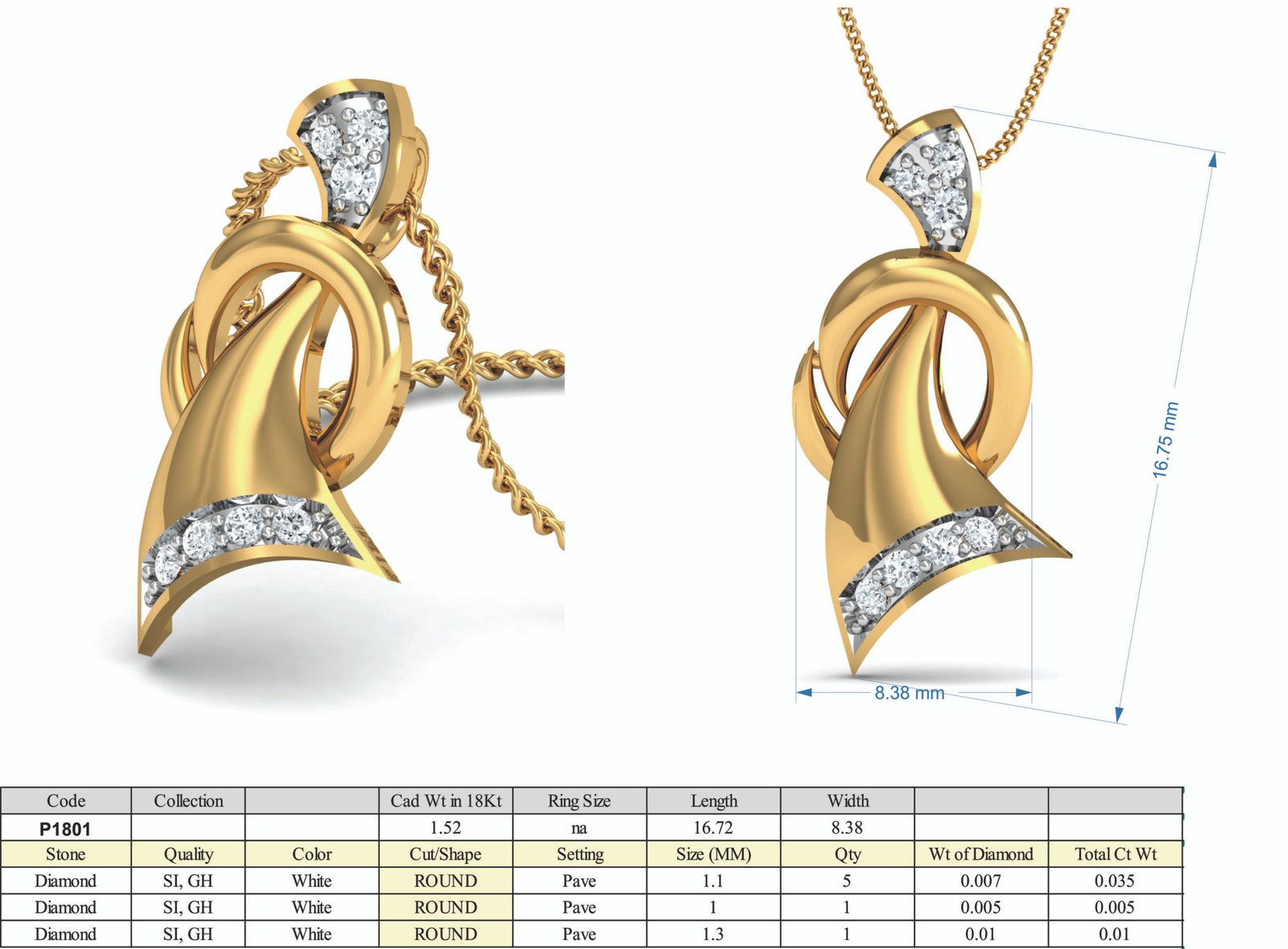 Showcase your modern elegance with this uniquely designed pendant set. Crafted in lustrous yellow gold, the pendant features fluid, artistic curves that create a bold yet graceful silhouette. Accentuated with shimmering diamonds on the top and bottom edges, the design exudes sophistication and brilliance from every angle.